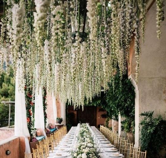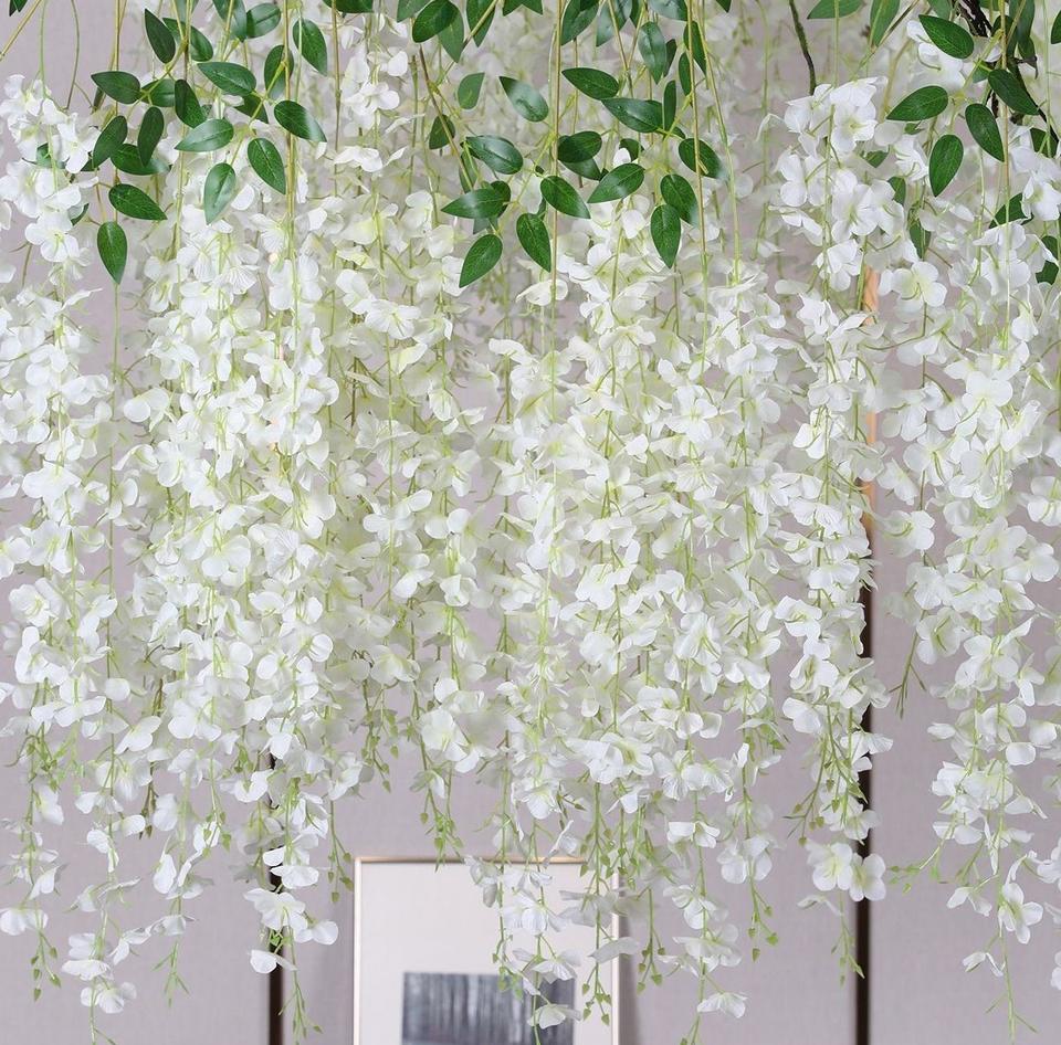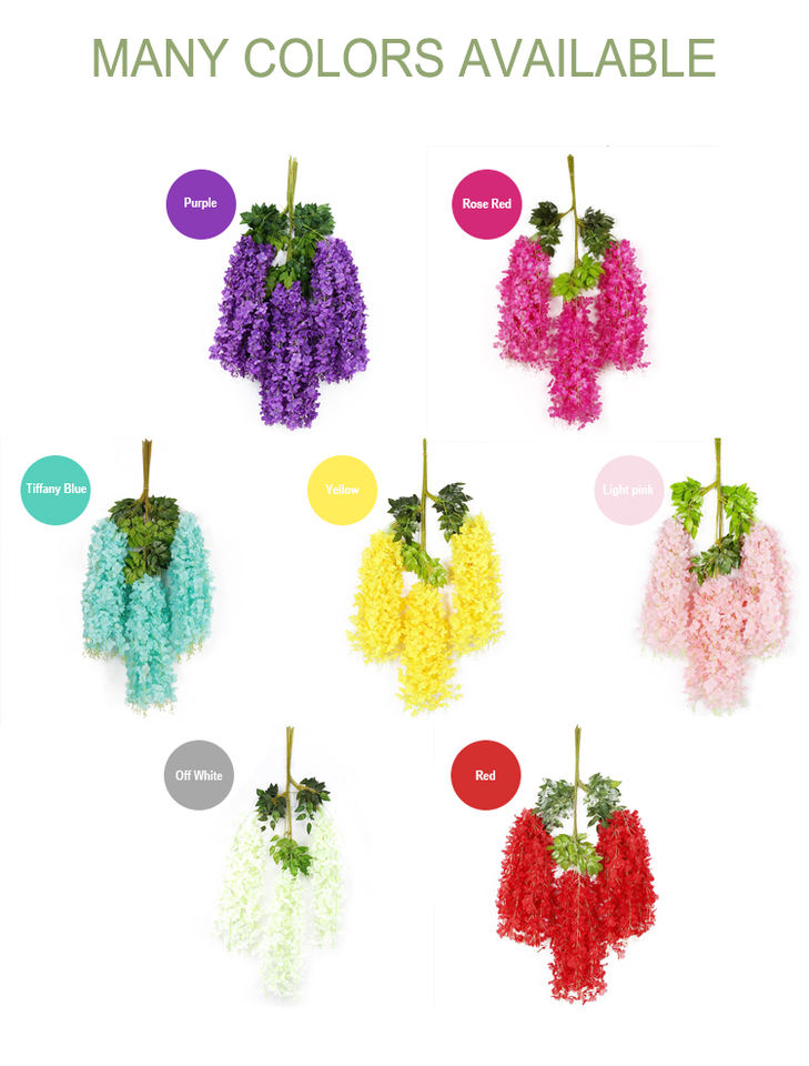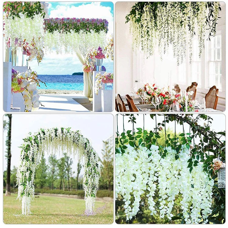 Venta caliente barato 12 piezas hermosa glicinia artificial de plástico colgante flor techo seda glicinia flor colgante para boda
