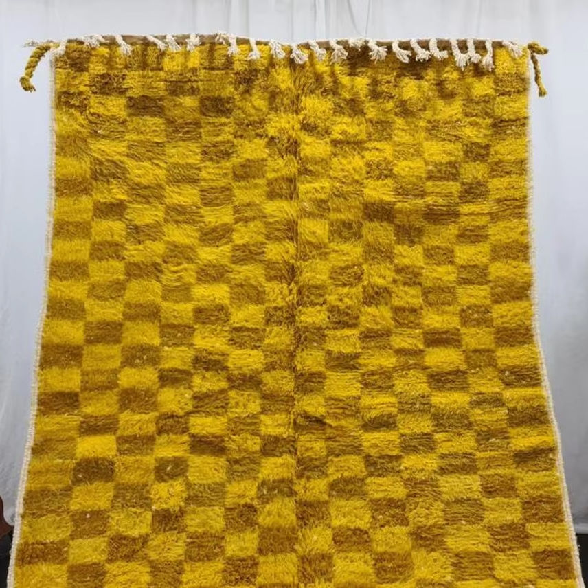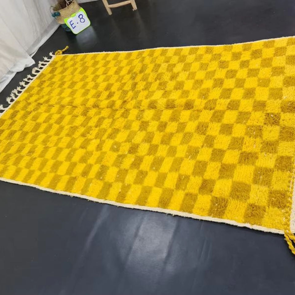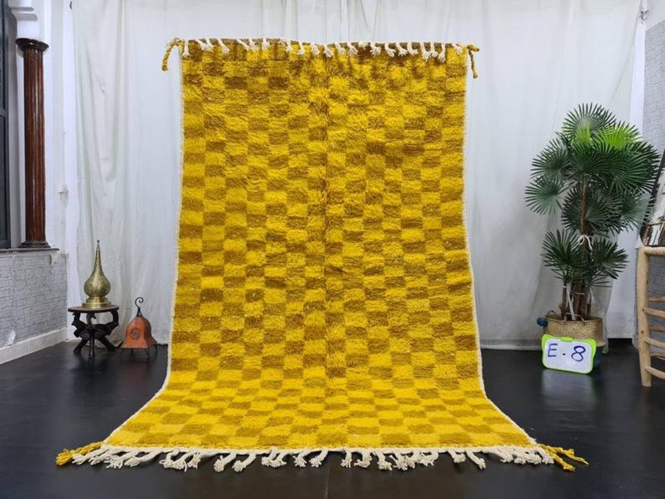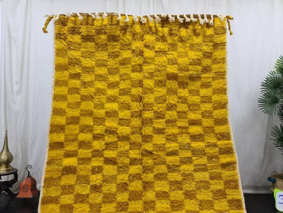 Venta caliente alfombra marroquí a cuadros comino y amarillo Beni Ouarain Check bereber lana Hotel alfombra productos de tendencia 2025 en línea
