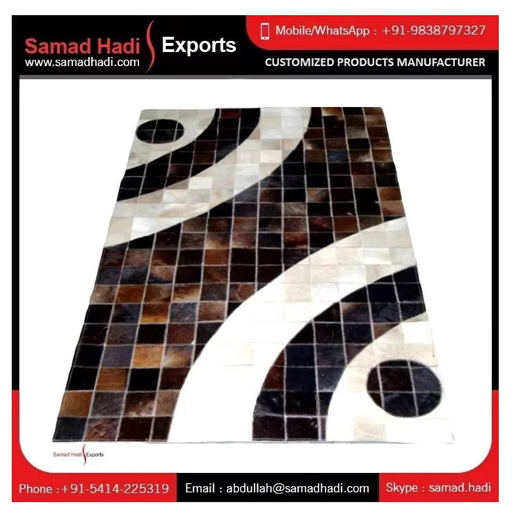 Alfombra de piel de vaca hecha a mano elegante y vendedora caliente con bordado de estilo natural agrega una pieza llamativa a la decoración del hogar a bajo precio