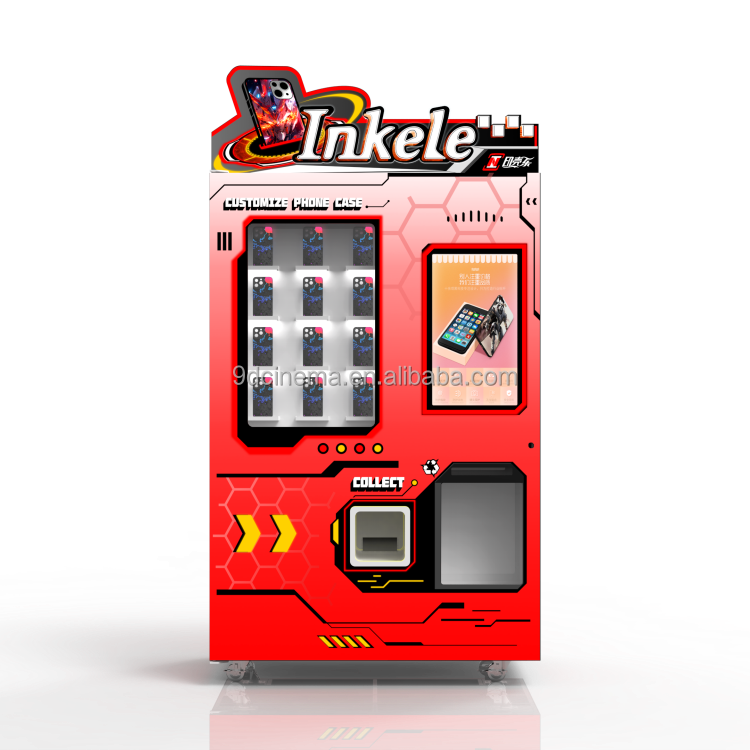 Venta caliente comercial completamente automático autoservicio de alta tecnología UV impresión personalizada caja del teléfono móvil máquina expendedora