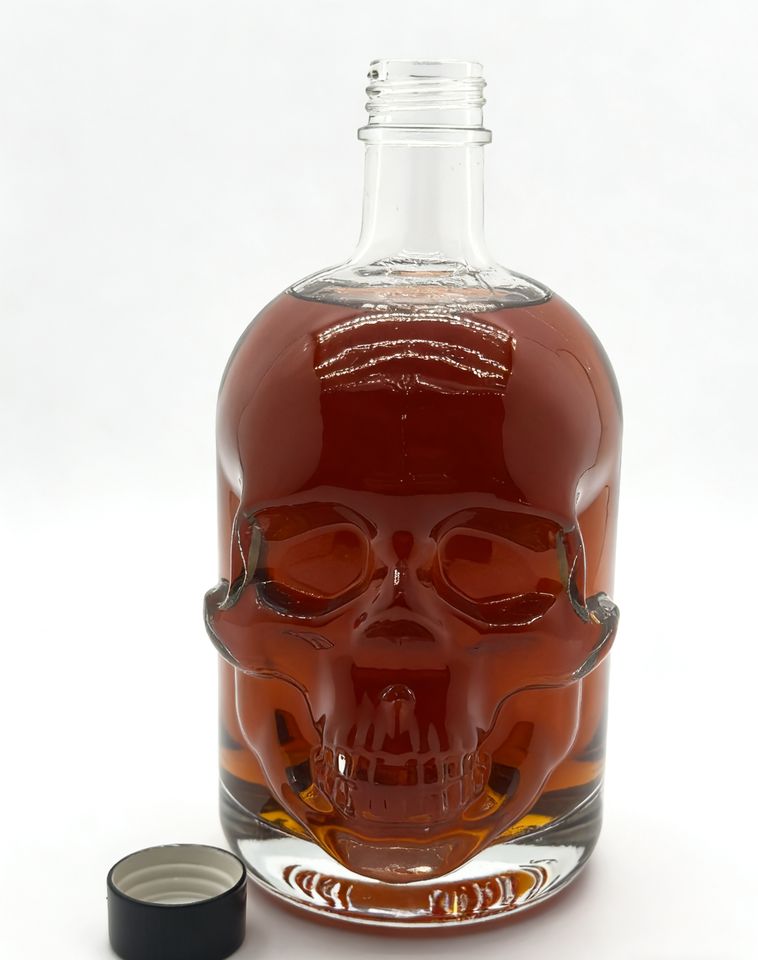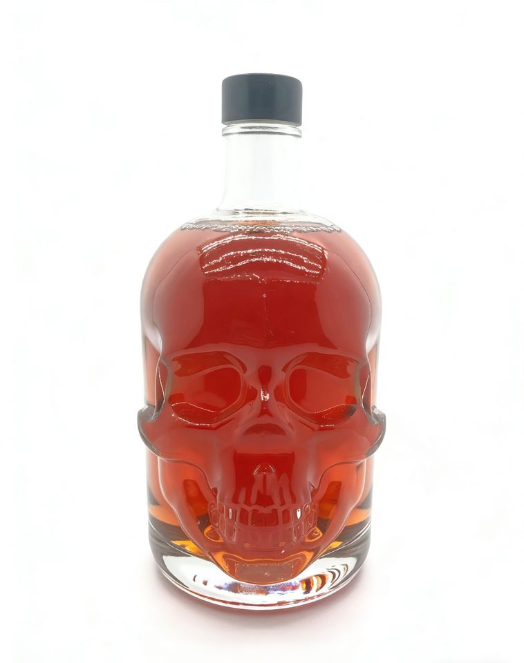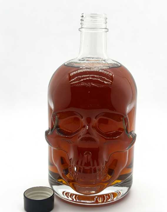 Botella de Vidrio para Whisky, Vodka, Brandy y Licores, con Forma de Calavera, Acabado Mate, Transparente, con Relieve, Capacidad Personalizable, Venta Caliente