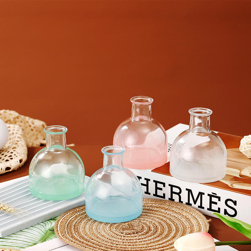 Botella Difusora de Aceite de Vidrio Redonda Esmerilada Degradada Rosa Azul Verde de 100ml Personalizada con Tapa de Tapón, ¡Venta Caliente!