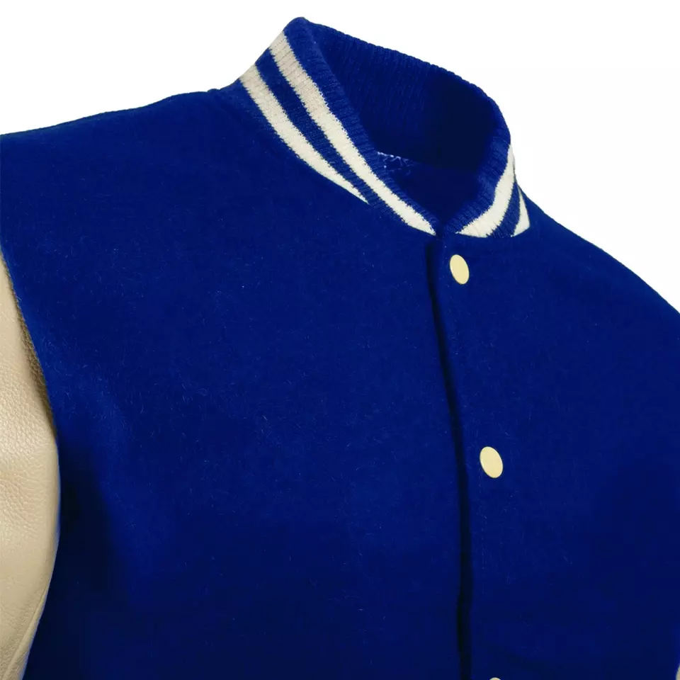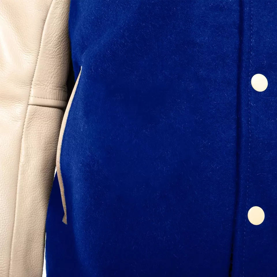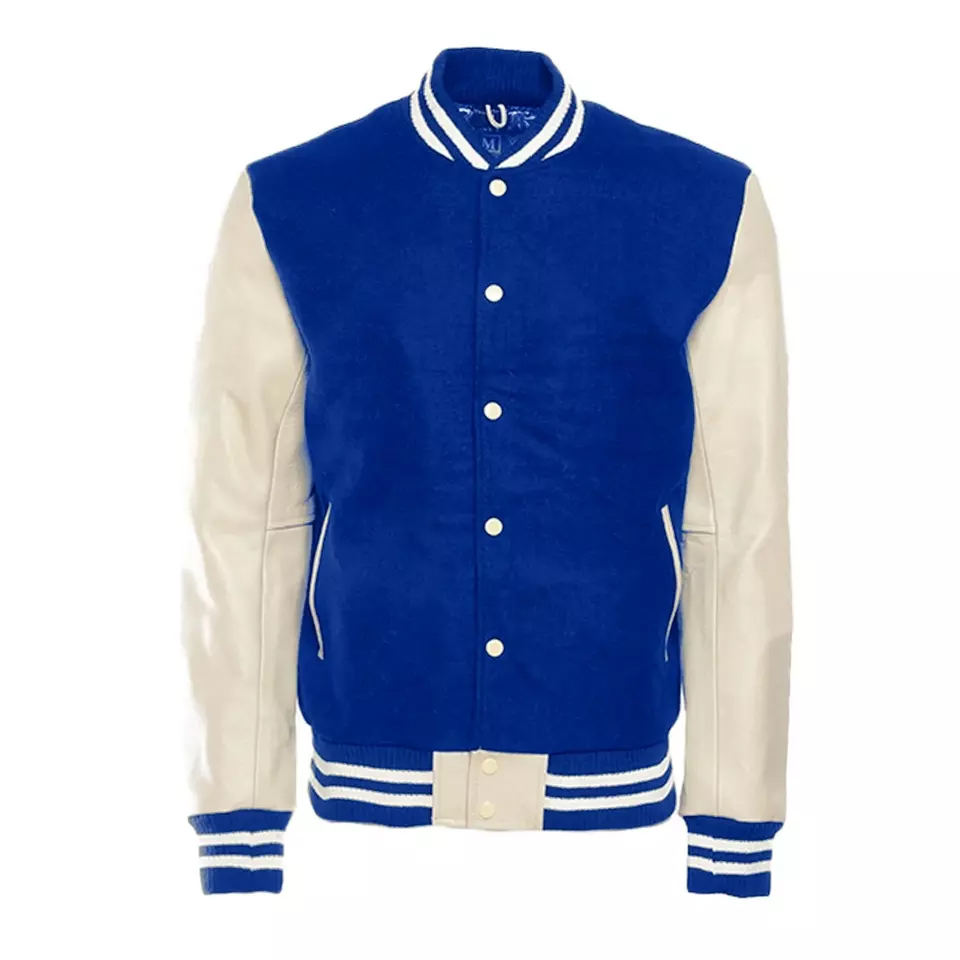 Venta caliente de los hombres de encargo del estilo fresco de lana de invierno Varsity Jacket Stand Collar Béisbol Bomber Cuero Look Cool Winter Accesorio