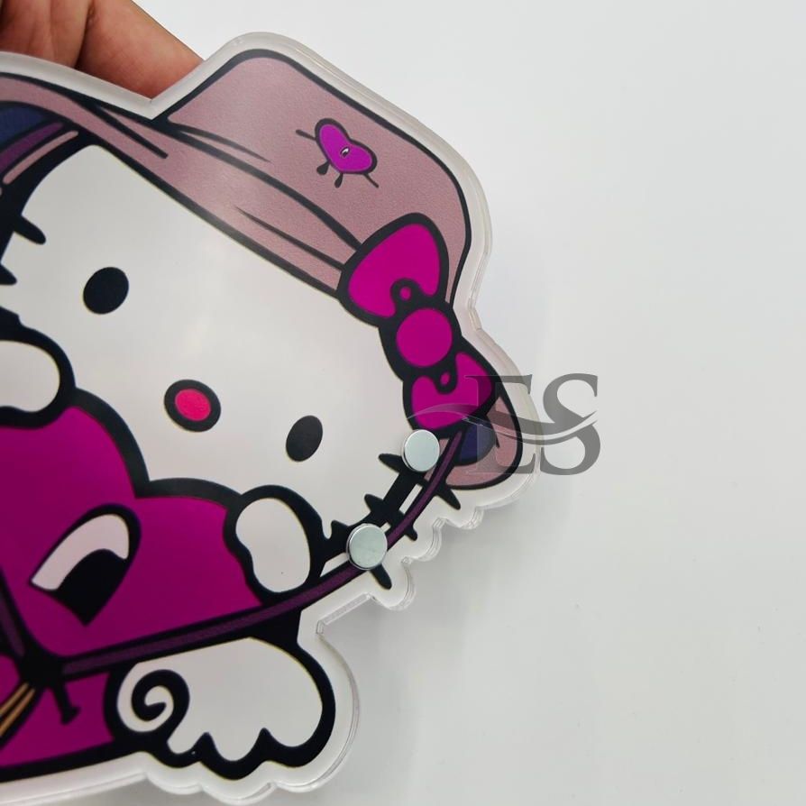 Venta caliente personalizado lindo Hello Kitty pestañas azulejo placa al por mayor acrílico pestañas imán azulejo círculo forma ovalada Etiqueta Privada
