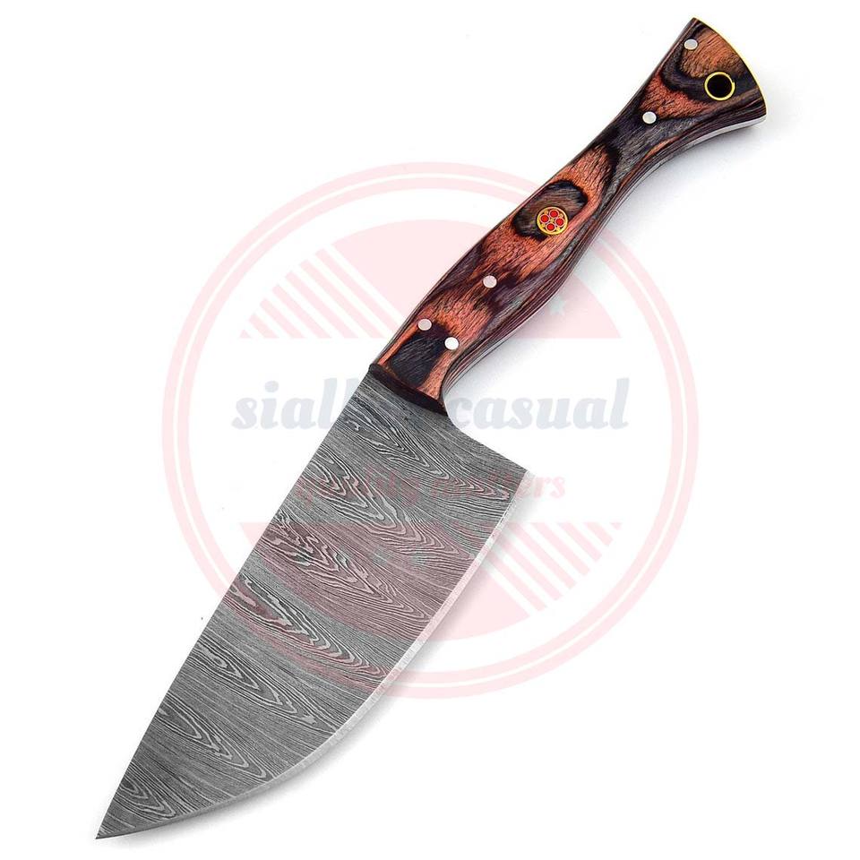 Cuchillo de chef de acero de Damasco personalizado, cuchillo de cocina profesional de Damasco con mango de madera