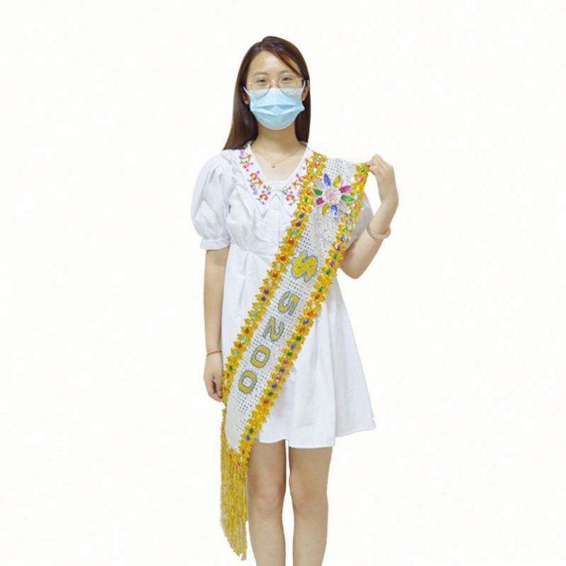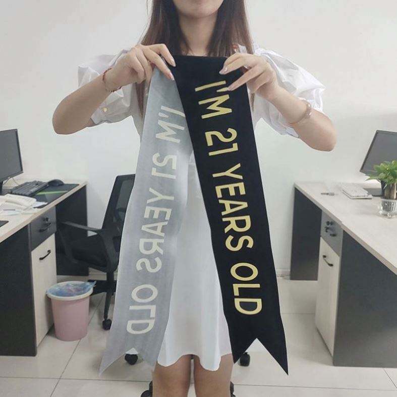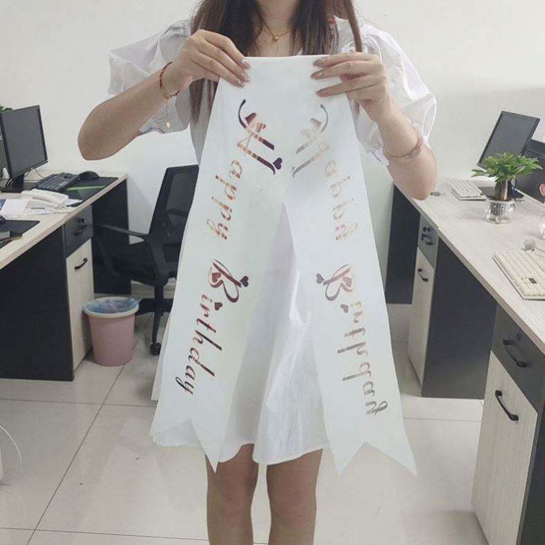 Cinta de poliéster ecológica con diseño personalizado, estampada digitalmente, para desfile de belleza, con la inscripción 'Feliz Cumpleaños', muy vendida.