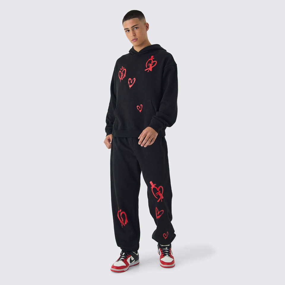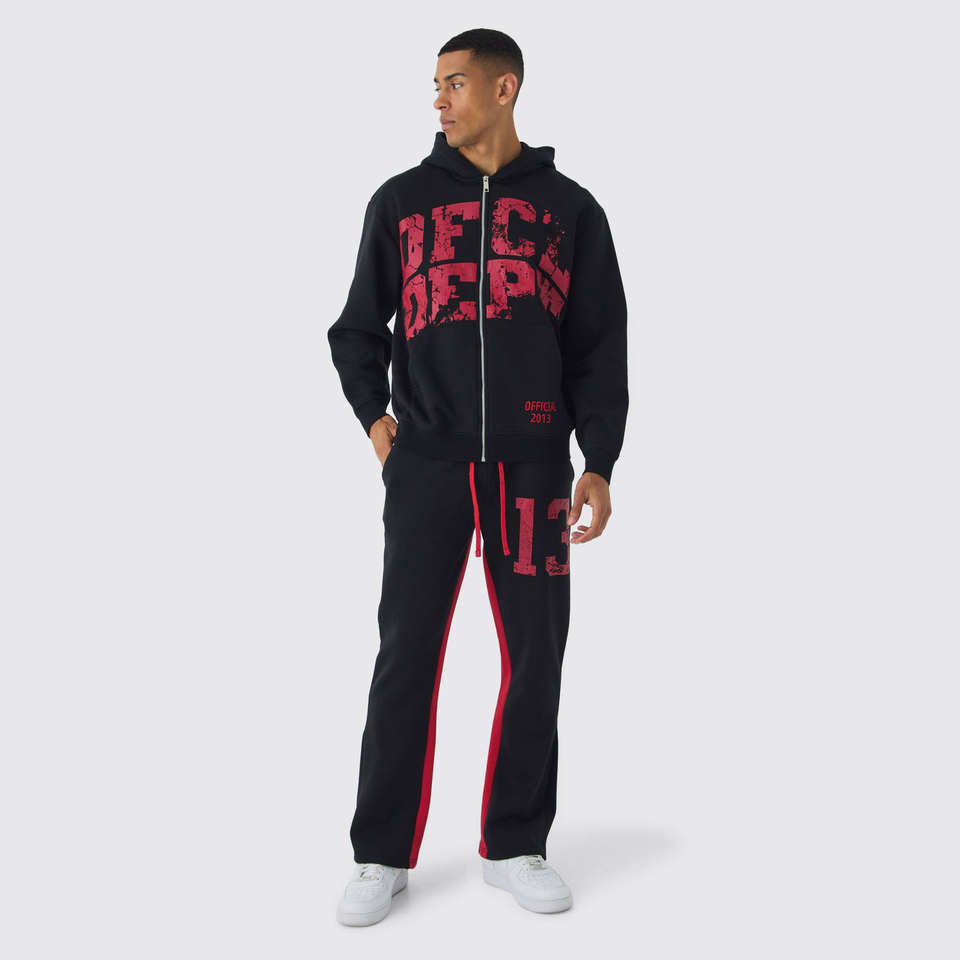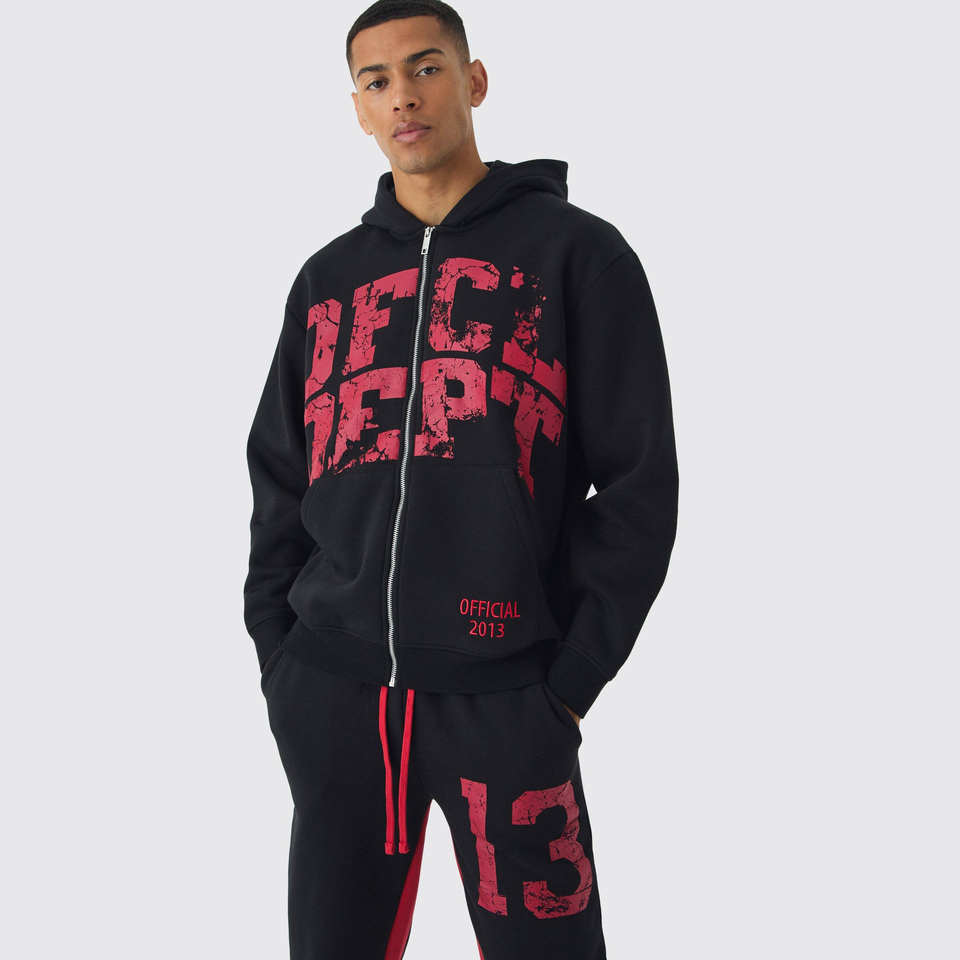 Conjunto de Sudadera con Capucha y Pantalones Deportivos con Cierre, Diseño Personalizado, Estilo Desgastado con Parches y Lavado Ácido, para Hombre