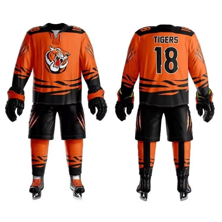 Venta caliente Uniforme de hockey sobre hielo de diseño personalizado para hombres con nombre de equipo y logotipo Ropa deportiva OEM para técnicas de impresión