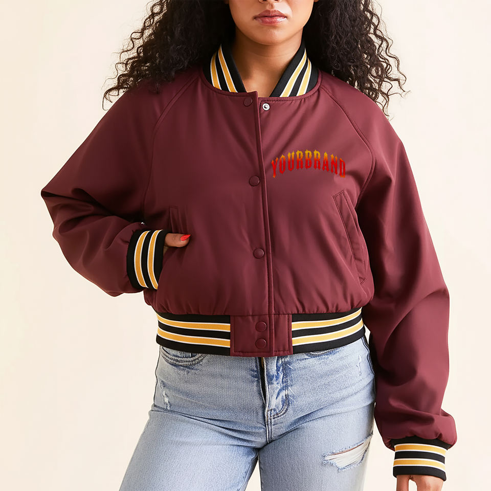 Venta caliente bordado personalizado Logo Crop Top a prueba de viento ligero Varsity chaqueta Streetwear Color sólido abotonado chaqueta