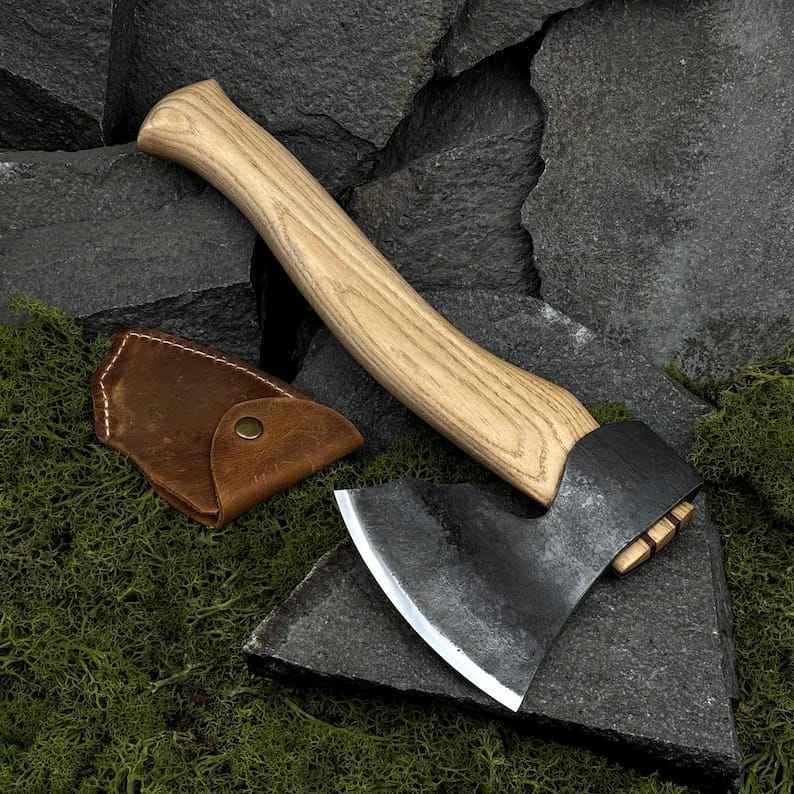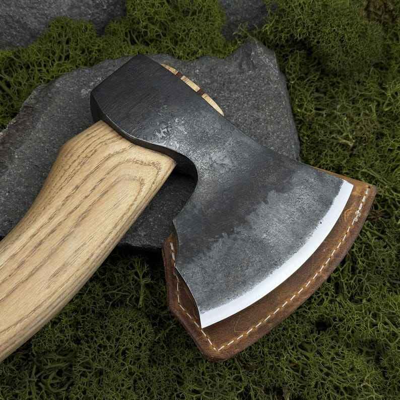 Hacha Vikinga de Acero con Alto Contenido de Carbono Forjada a Mano, Venta Directa de Fábrica, para Campismo y Supervivencia al Aire Libre, con Funda de Cuero