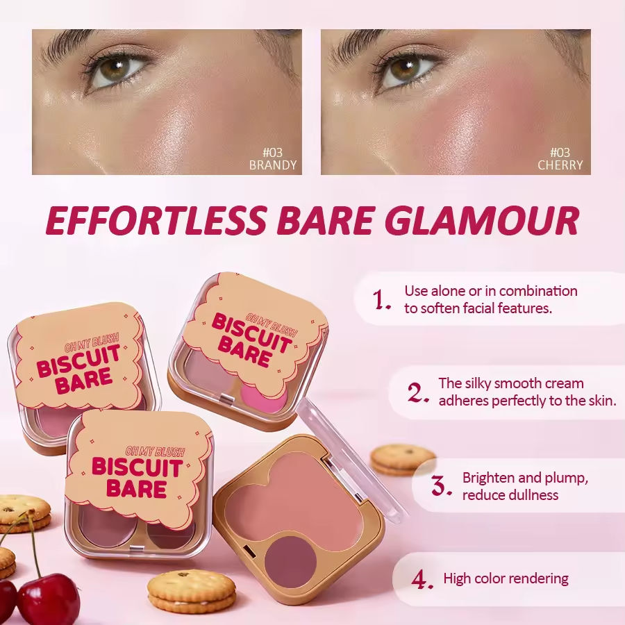 Paleta de Rubor y Corrector 2 en 1 con Logotipo Personalizado, Acabado Mate, Larga Duración, Fácil de Difuminar, Rubor en Crema Tipo Galleta