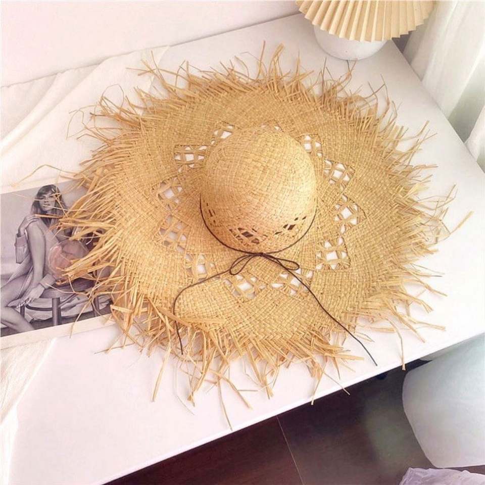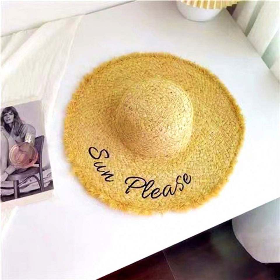 Sombrero de Paja Rafia Hecho a Mano con Logotipo Personalizado, Sombrero de Sol para Mujer, Económico, de Ala Ancha, para Playa y Verano