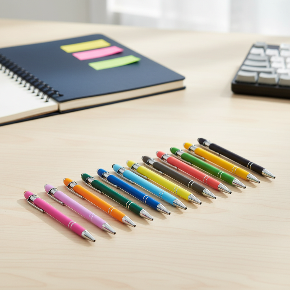 Bolígrafo de Punta Suave de Goma con Superficie Mate y Logotipo Personalizado, Bolígrafo Táctil de Metal Premium con Logotipo Grabado