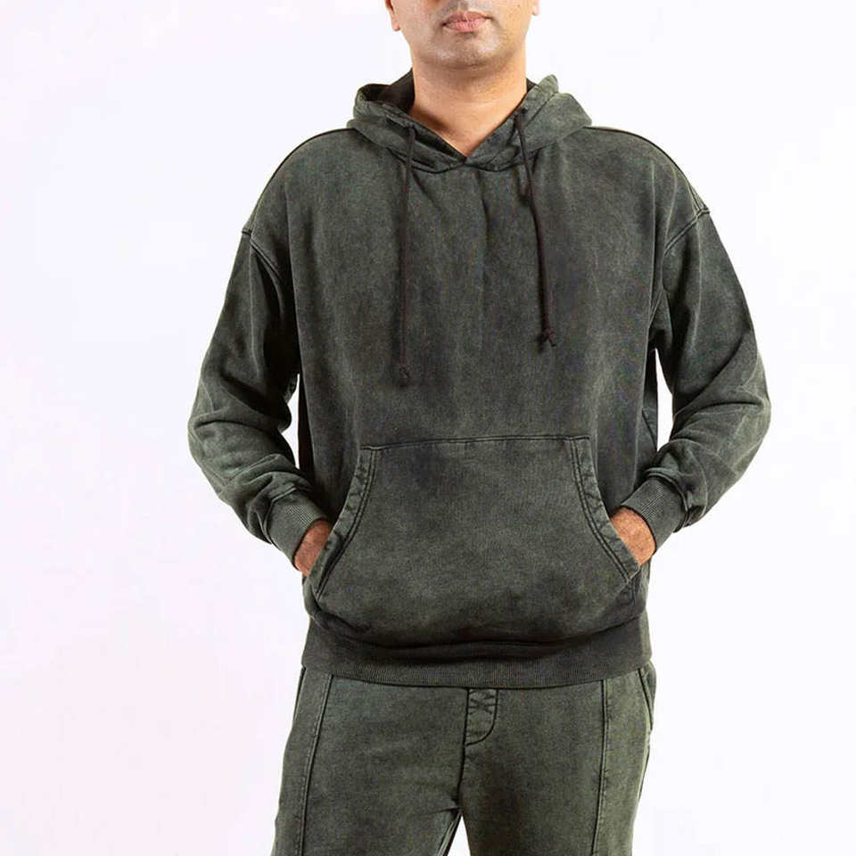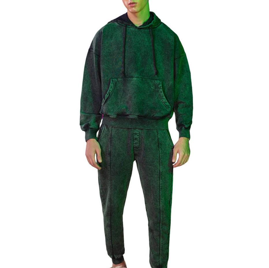 Chándal con Logotipo Personalizado para Hombre, Estilo Acid Wash, Venta al por Mayor, OEM, Ropa Urbana Vintage, Sudadera con Capucha, Chándal Lavado al Ácido