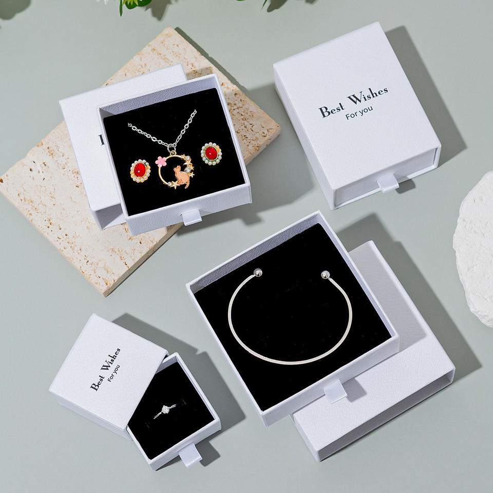 Gran Venta de joyero de papel de cartón de lujo con cajón deslizante rectangular con logotipo personalizado con patrón cuadrado joyeros de mano