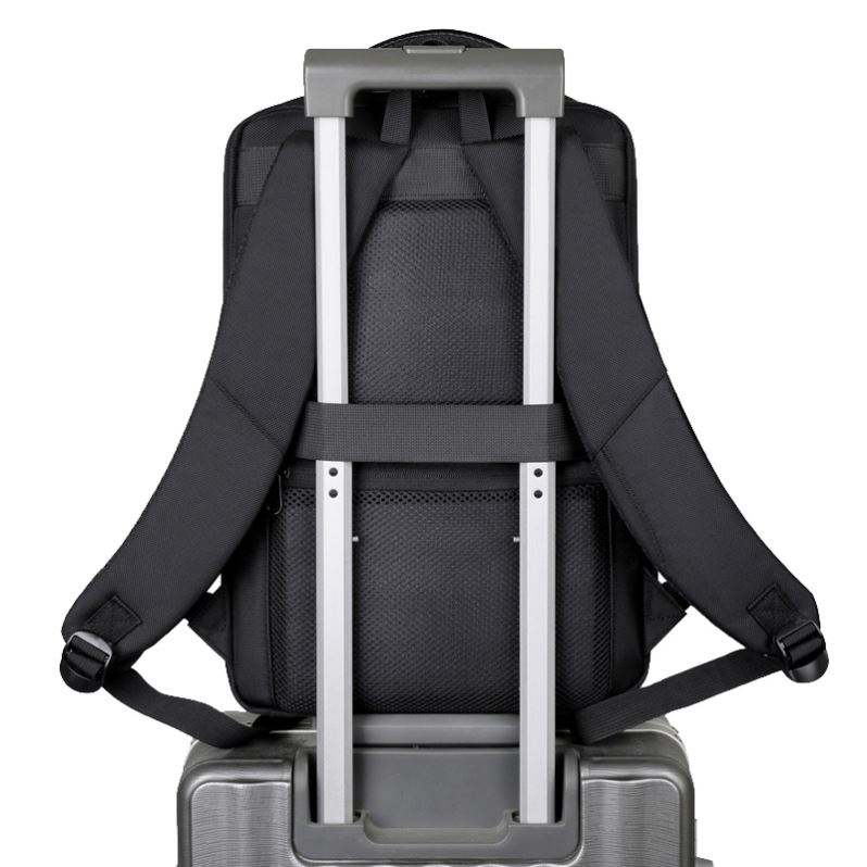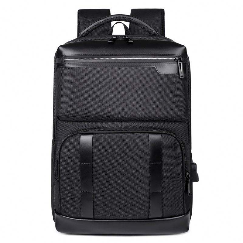 Venta caliente logotipo personalizado Puerto USB mochila de gran capacidad de 15,6 pulgadas impermeable PU diseño expandible Oxford poliéster cremallera para