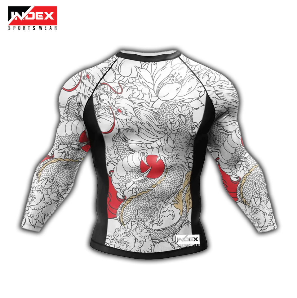 Protector de erupción ajustado de manga larga para hombre de alta calidad hecho a medida para entrenamiento BJJ MMA transpirable de secado rápido