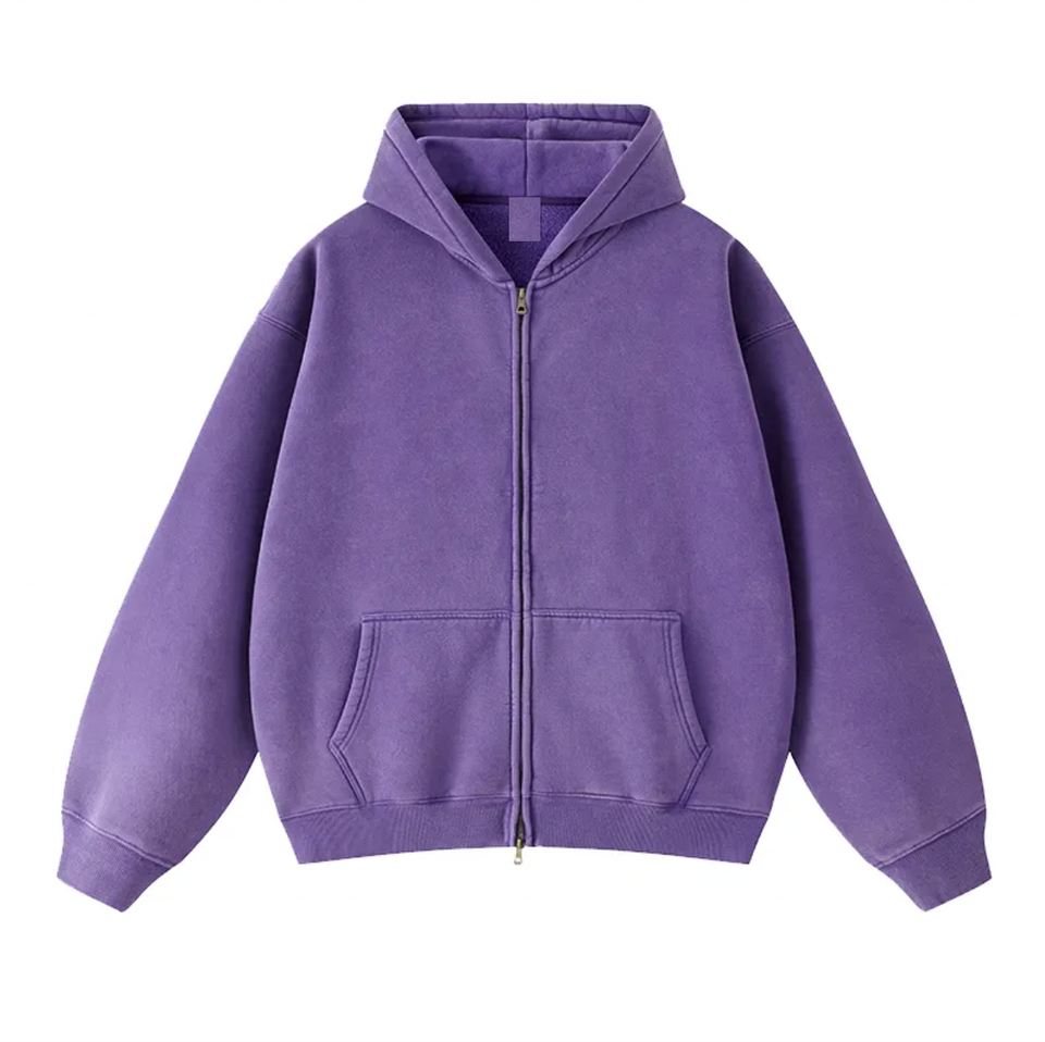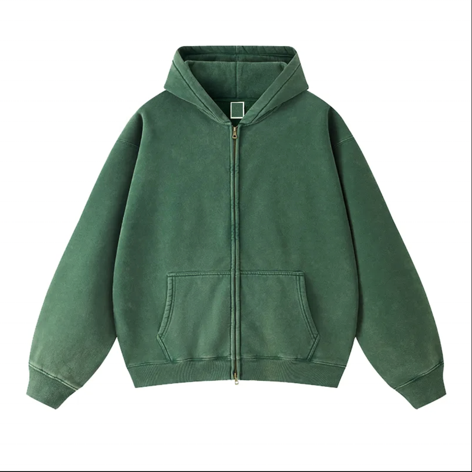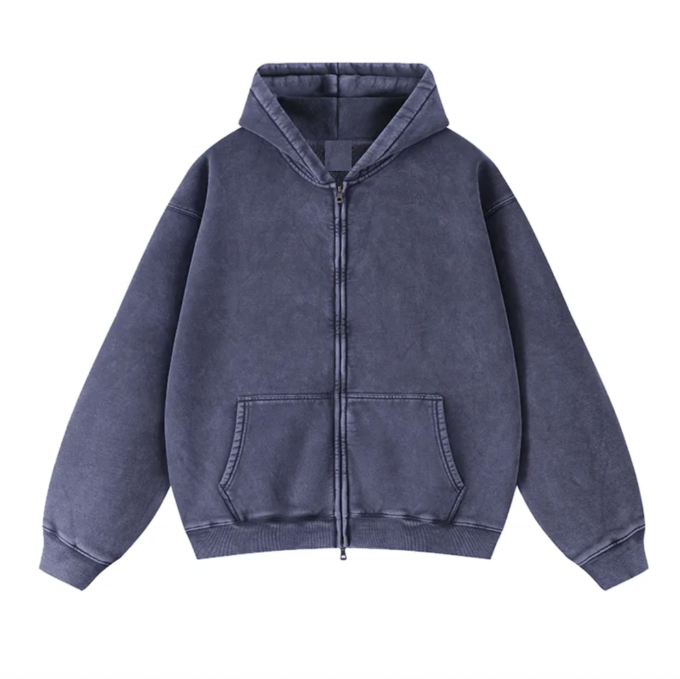 Venta caliente de encargo de los hombres Logo Boxy Hoodie Vintage Wash Distress Negro Oversized Acid Wash Zipper Hoodie