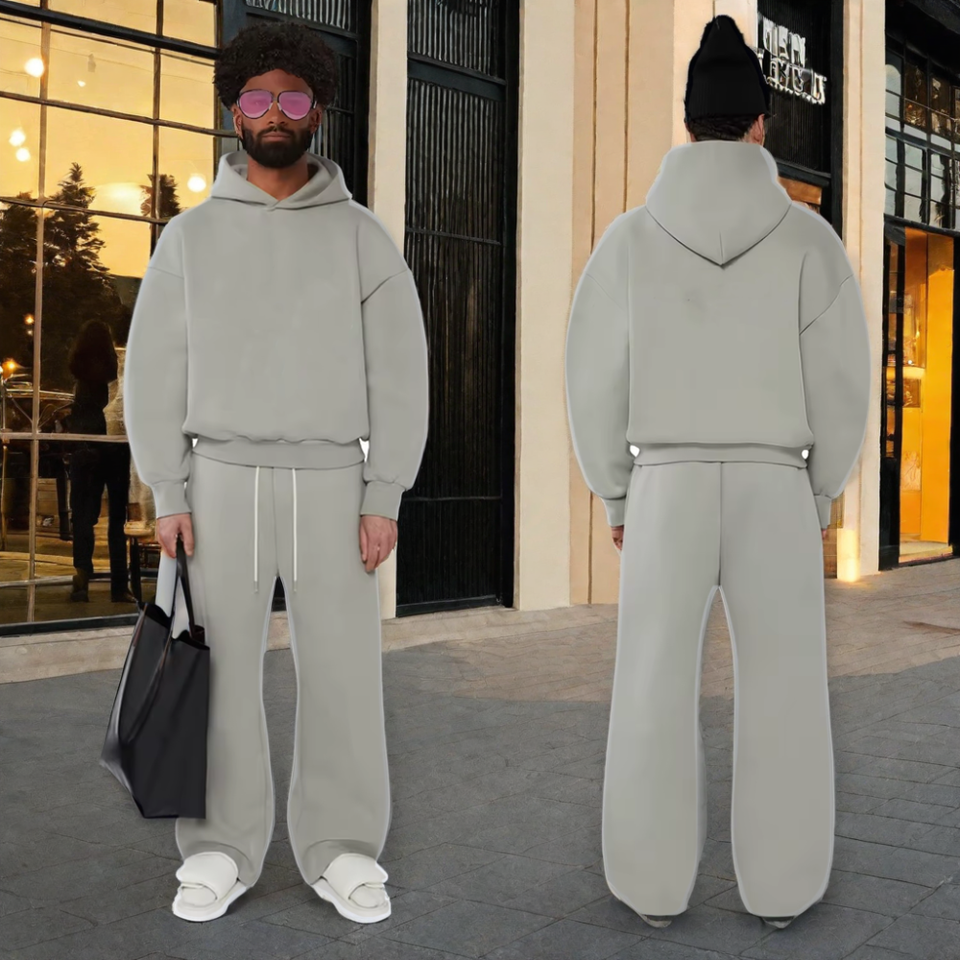Conjunto de Sudadera con Capucha y Pantalones de Chándal Acampanados de Forro Polar Grueso y Transpirable de Algodón Sólido para Hombre, Tallas Grandes, Venta Caliente