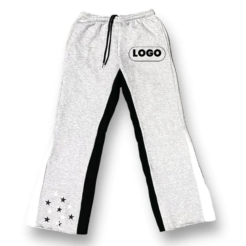 Pantalones de chándal acampanados personalizados para hombre, pantalones de chándal informales holgados, pantalones de chándal apilados con cintura elástica para hombre