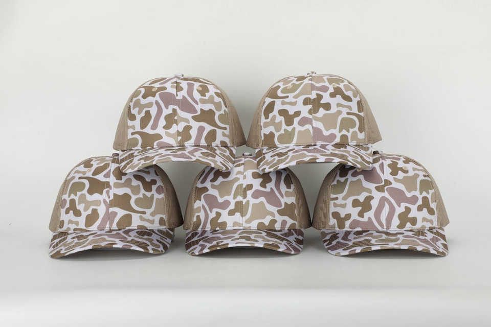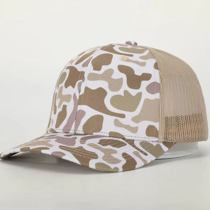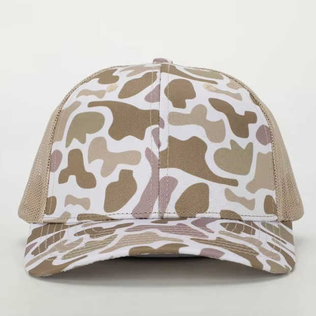 Venta caliente personalizado poliéster caqui malla trasera gorra de camionero camuflaje del desierto gorra Snapback Old School Classic 112 gorra de camionero