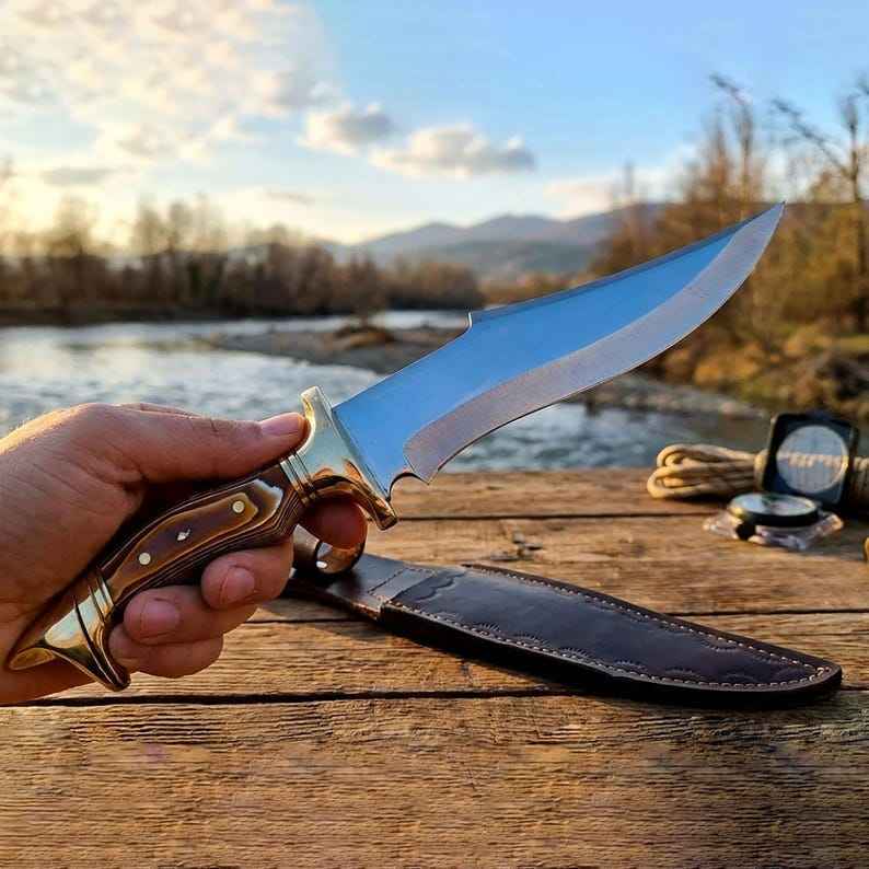Cuchillos de caza de acero D2 hechos a mano, personalizados, de primera calidad, con mango de madera, para exteriores, de grado industrial, para acampar y supervivencia, con funda.