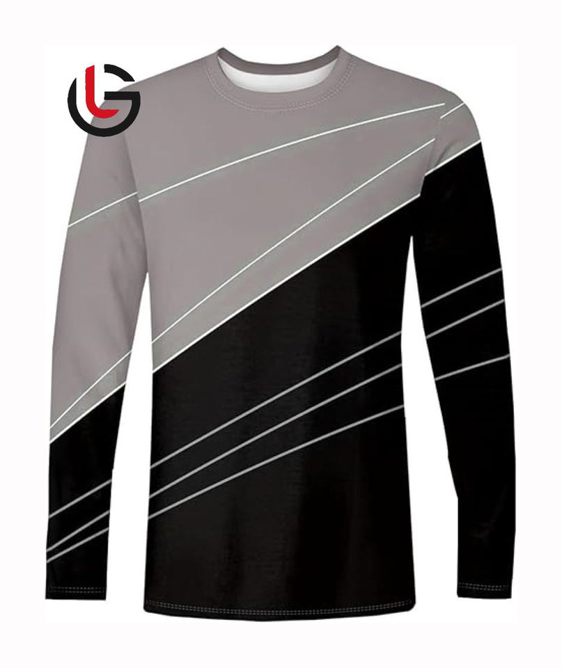 Camiseta informal de manga larga para hombre con sublimación de diseño de impresión personalizada, 100% algodón, tela ecológica de 180 gramos