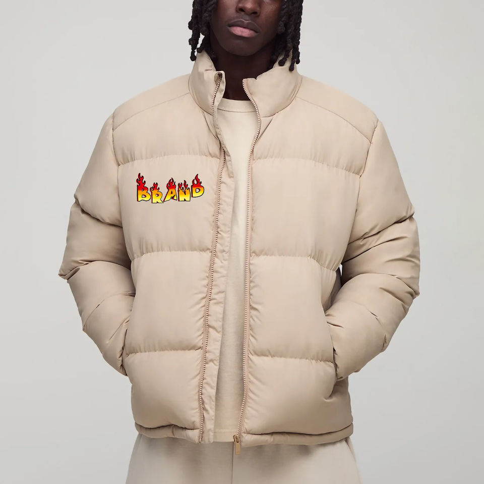 Chaqueta Acolchada de Algodón con Cierre de Cremallera y Cuello Alto, Personalizada con Logotipo Impreso, Ribete Blanco, Ligera, Transpirable, Estilo Burbuja