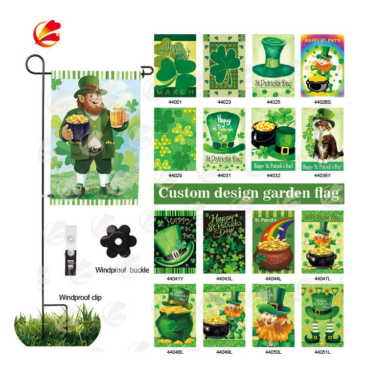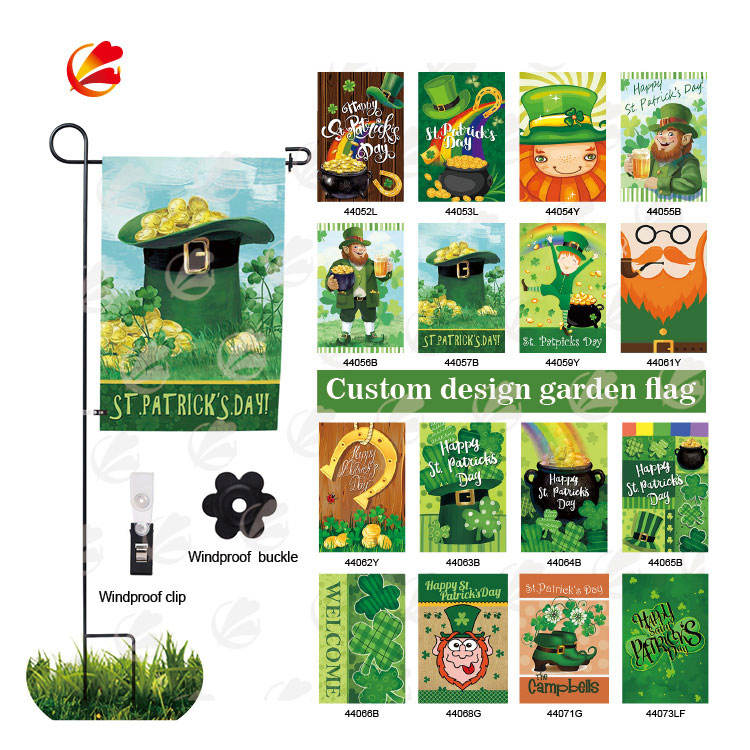 Venta caliente personalizado Día de San Patricio jardín Bandera de lino grueso cuadrado trébol monedas patio bandera para decoración de patio al aire libre