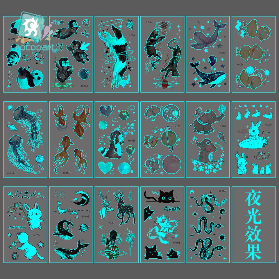 Tatuajes Temporales personalizados impermeables para niños, pegatinas luminosas con diseño de pájaro, Delfín y conejo que brillan en la oscuridad, gran oferta