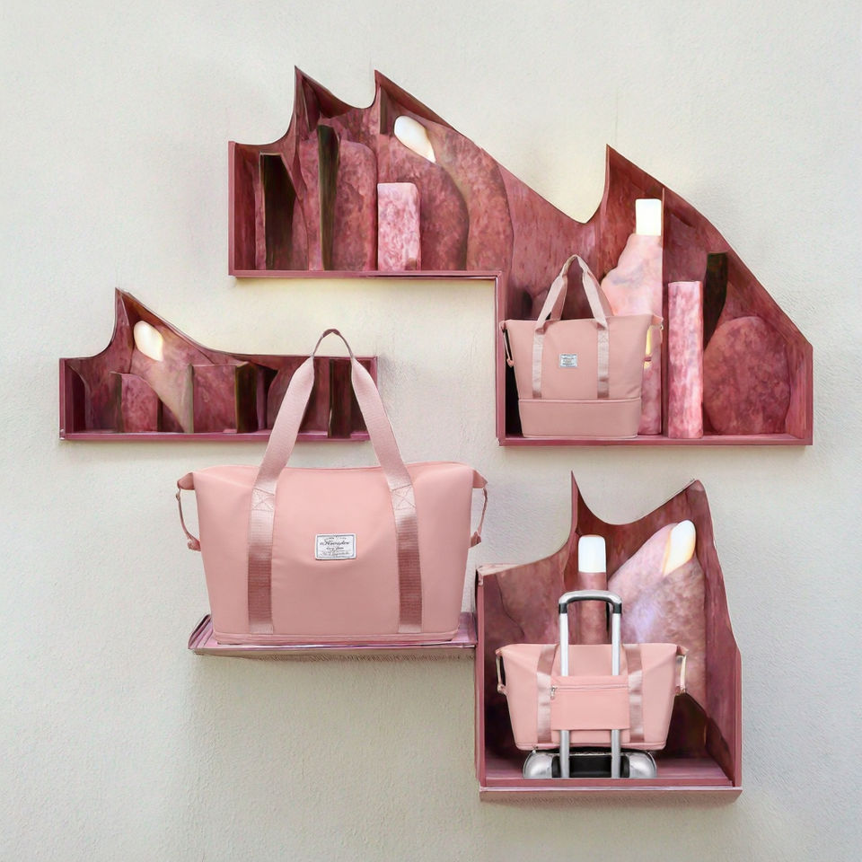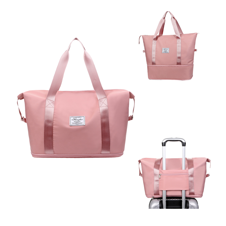 Bolsa de Viaje de Moda con Asa para Gimnasio y Yoga, de Poliéster Rosa, Personalizada, para Damas, Venta al por Mayor, Equipaje de Viaje Económico