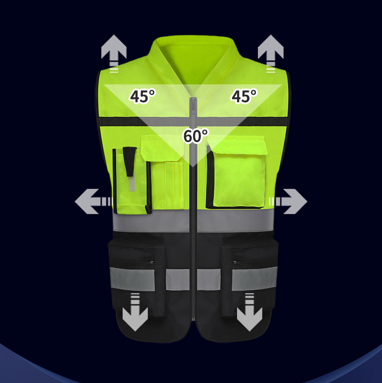 Chaleco de actividad al aire libre con logotipo personalizable de Venta caliente con seguridad reflectante multibolsillos impermeable