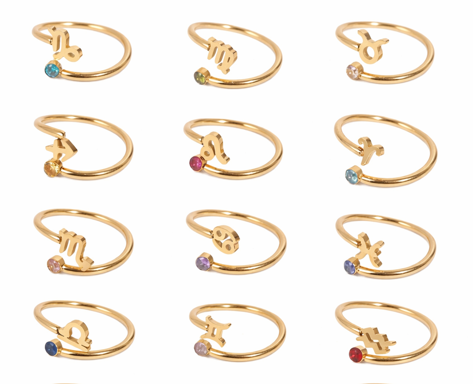 Anillo Ajustable de Acero Inoxidable con Signos del Zodiaco Personalizables, con Runas del Zodiaco y Circonita Cúbica, Resistente al Agua