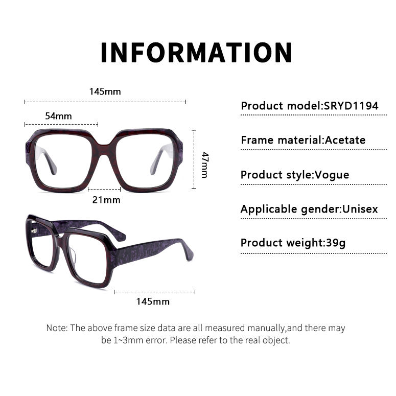 Gafas de sol Retro personalizadas de Venta caliente, monturas de acetato óptico de tendencia europea y americana para mujeres y hombres, azul y rojo