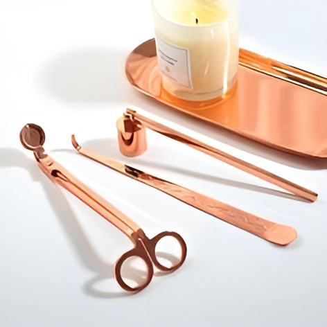 Juego de cuidado de velas personalizado de gran venta MOQ bajo cortador de mecha de velas de acero inoxidable pulido y cucharón