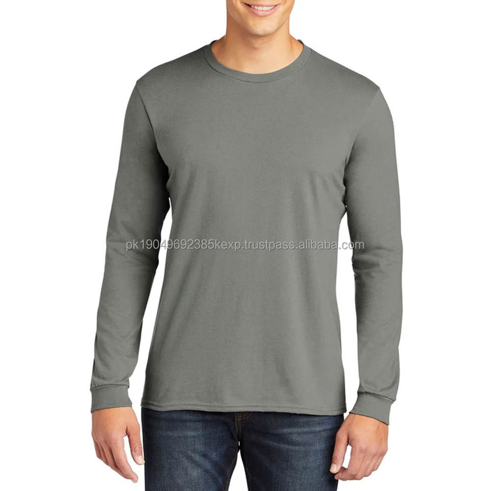 Camiseta de Manga Larga con Cuello Redondo Extra Grande de Algodón para Hombre, de Alta Calidad, con Impresión de Logotipo Personalizado, para Invierno