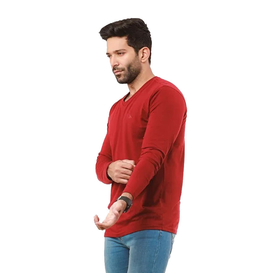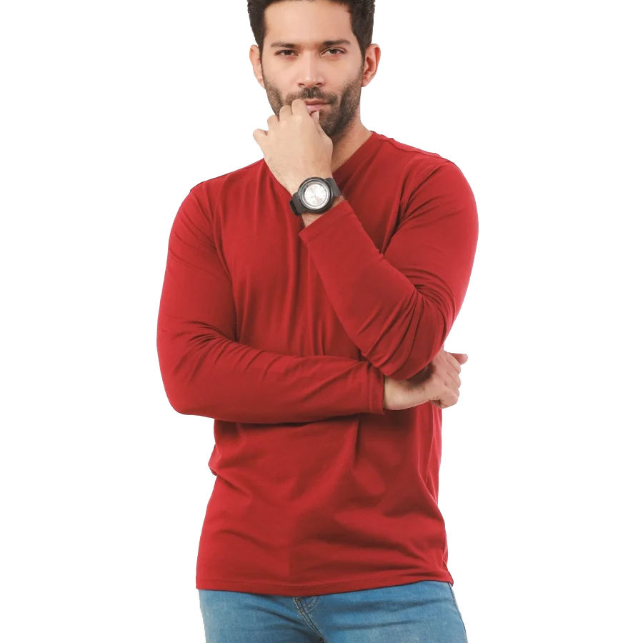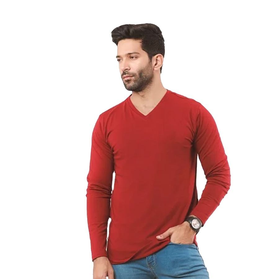 Camiseta lisa básica para hombre, de manga larga y cuello en V, color rojo, personalizada, superventas