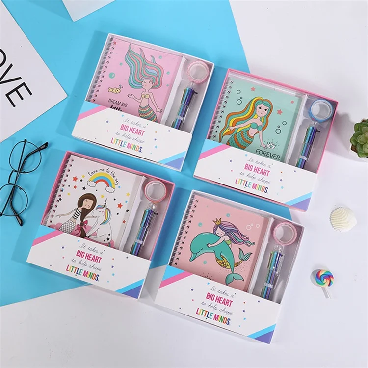 Cuaderno Personalizado con Diseño de Sirena para Niños, un Set de Regalo que Incluye Bolígrafos