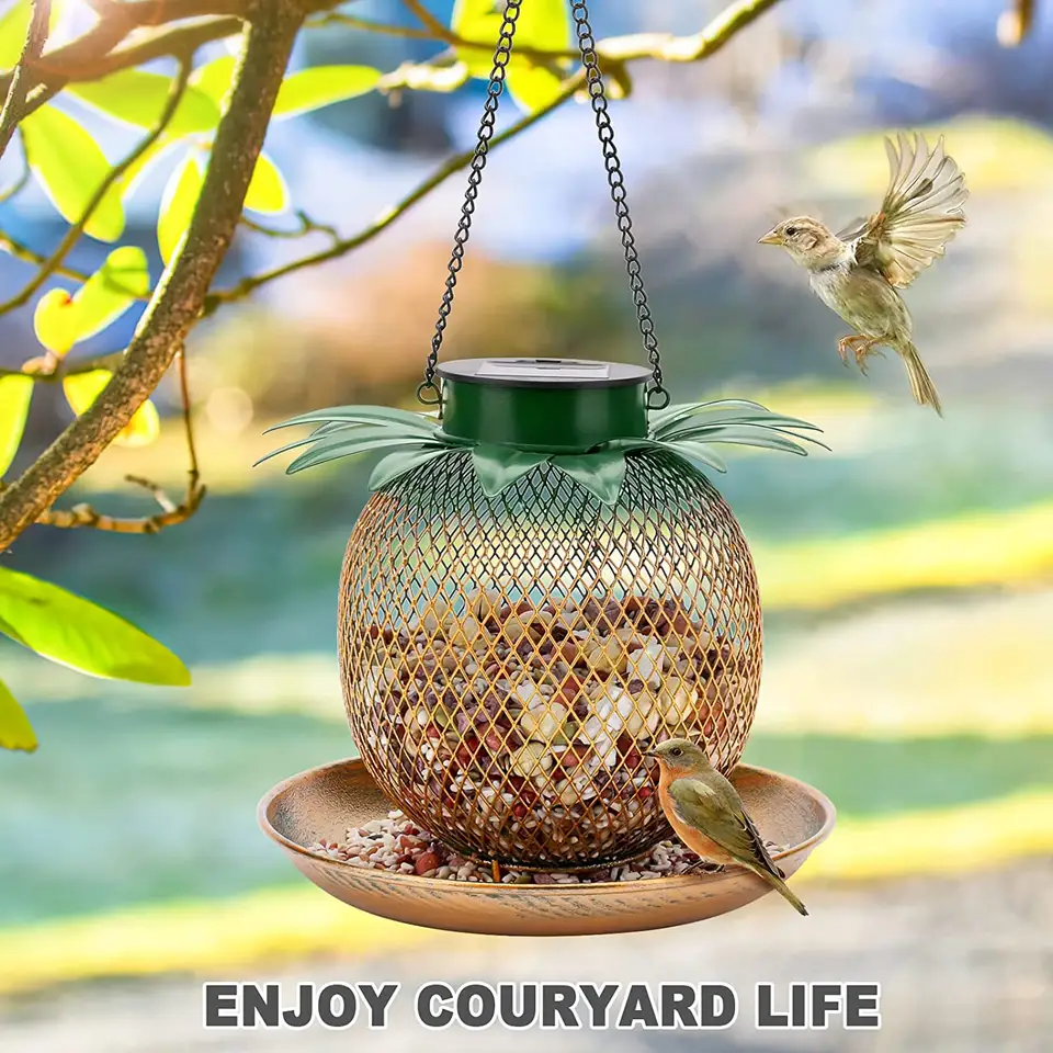 Venta caliente personalizado hierro rojo comedero para pájaros casa hecha a mano al aire libre jardín producto de Metal con patrón Animal