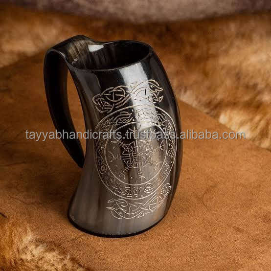 Venta caliente Logotipo de tamaño personalizado tallado cuerno de búfalo jarra mejor calidad Animal tallado a mano decoración pulido buey/cuerno de vaca