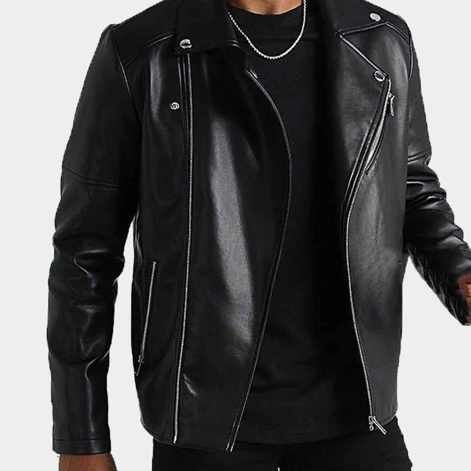 Venta caliente diseño 2025 chaqueta de cuero para hombres chaqueta de bombardero nuevos hombres motocicleta solapa asimétrica cinturón con cremallera Slim Fit Biker Coat