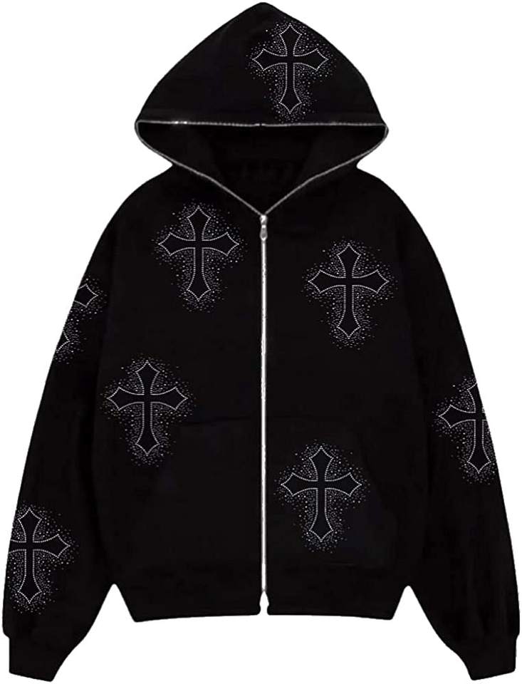 Vintage, Sobredimensionado, Cremallera-para arriba, Sudadera