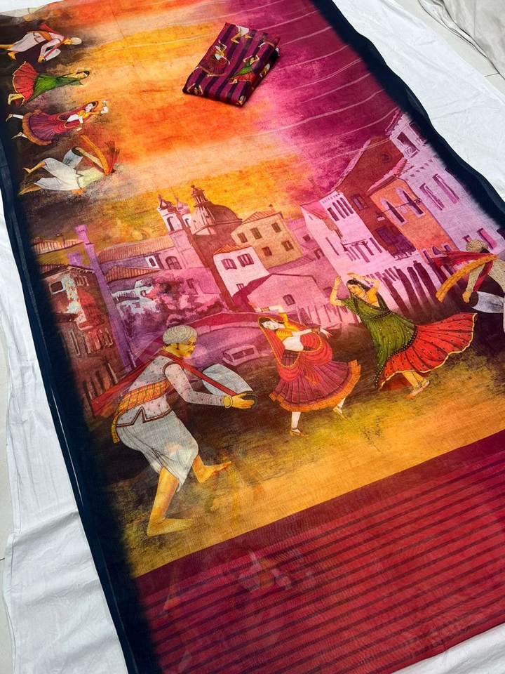 Doble Zari frontera Saree con impresión creativaMétodos de impresión