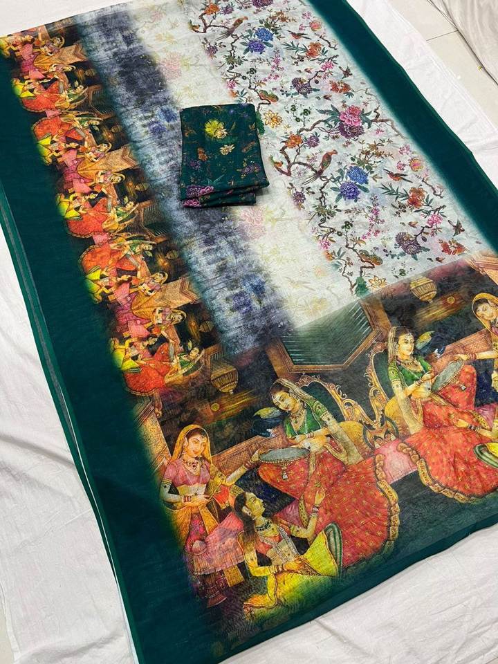 Trabajo:Doble Zari frontera Saree con impresión creativa