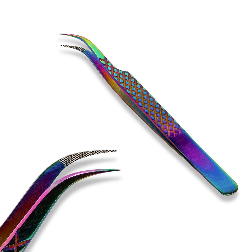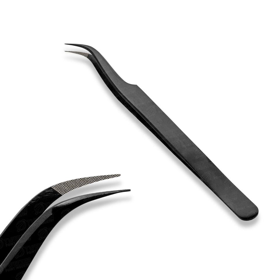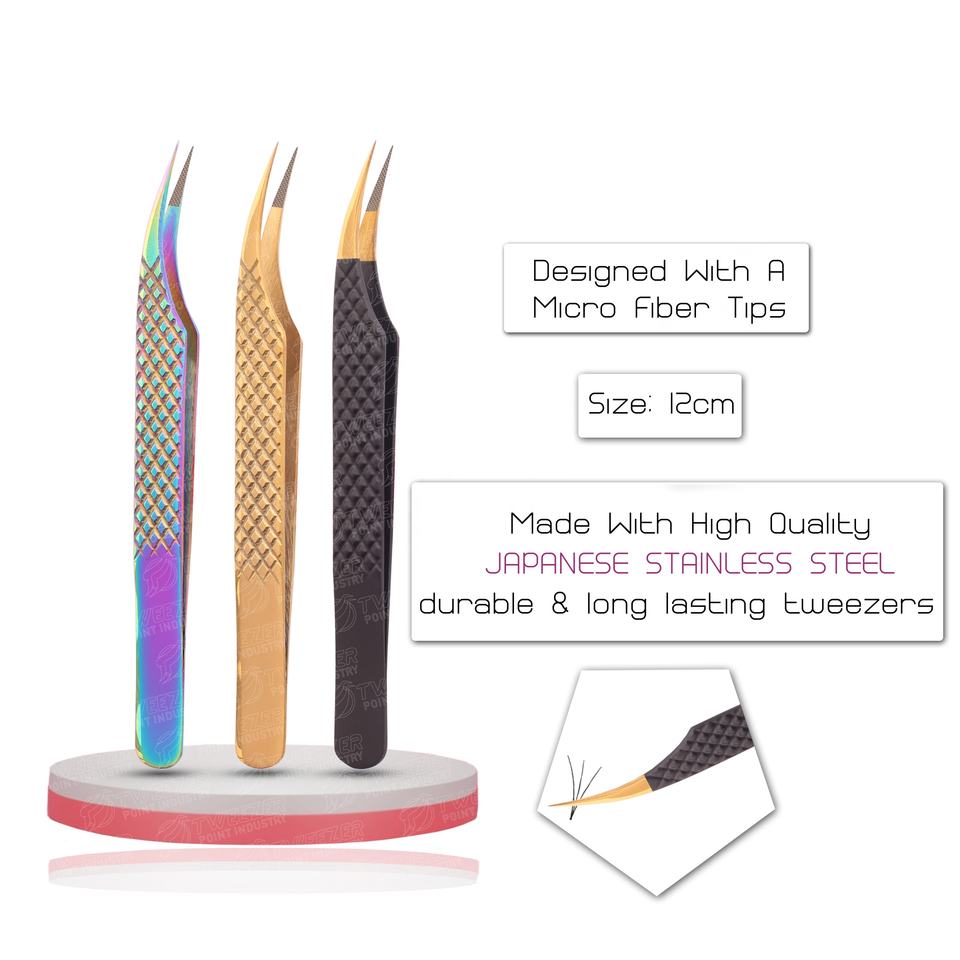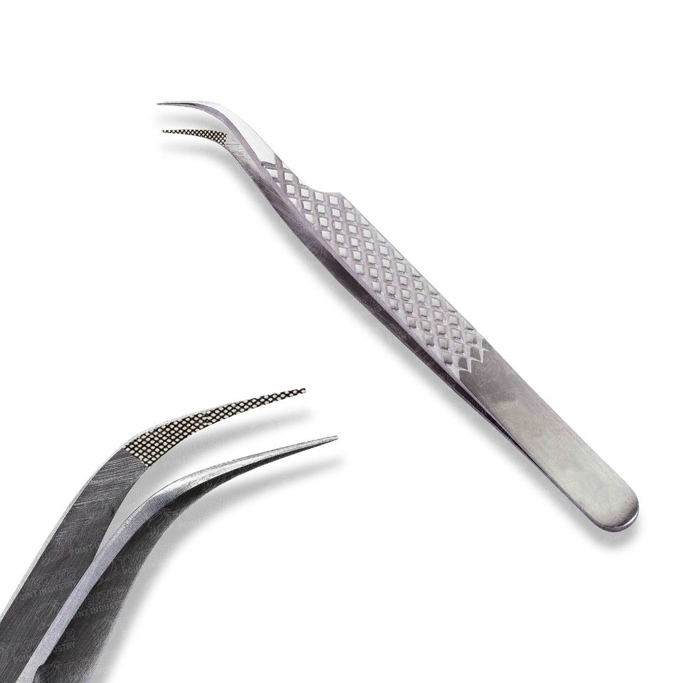 Pinzas de extensión de pestañas semicurvadas antiestáticas no corrosivas con agarre de diamante, herramienta de belleza de acero inoxidable puntiaguda