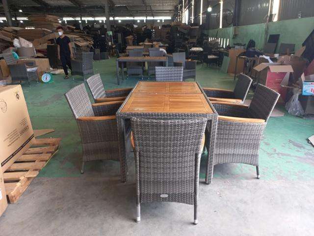 Juego de mesa de comedor de 6 plazas con cojín de asiento Juego de muebles de jardín Juego de comedor de ratán Pe 6 plazas Phu Linh Mayorista