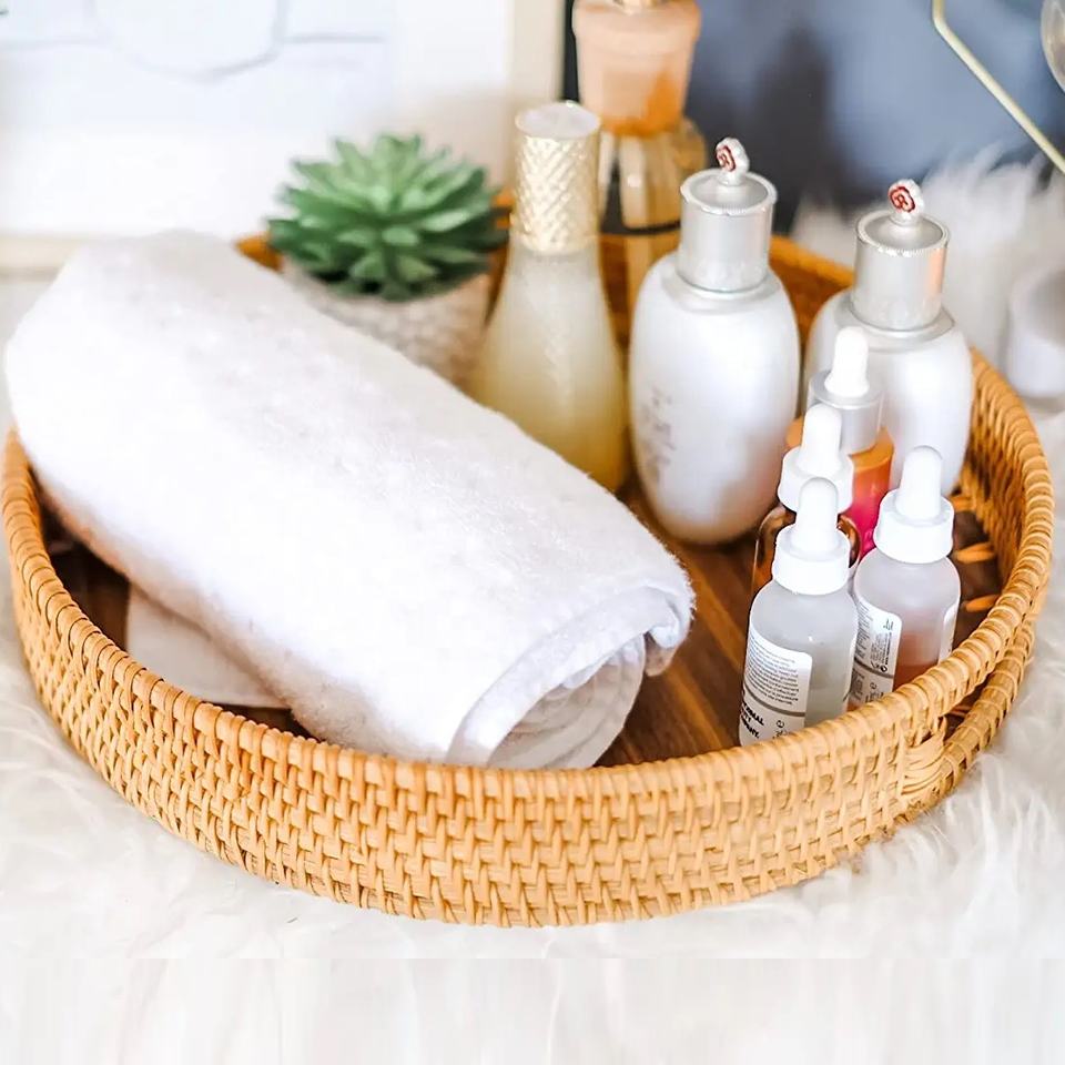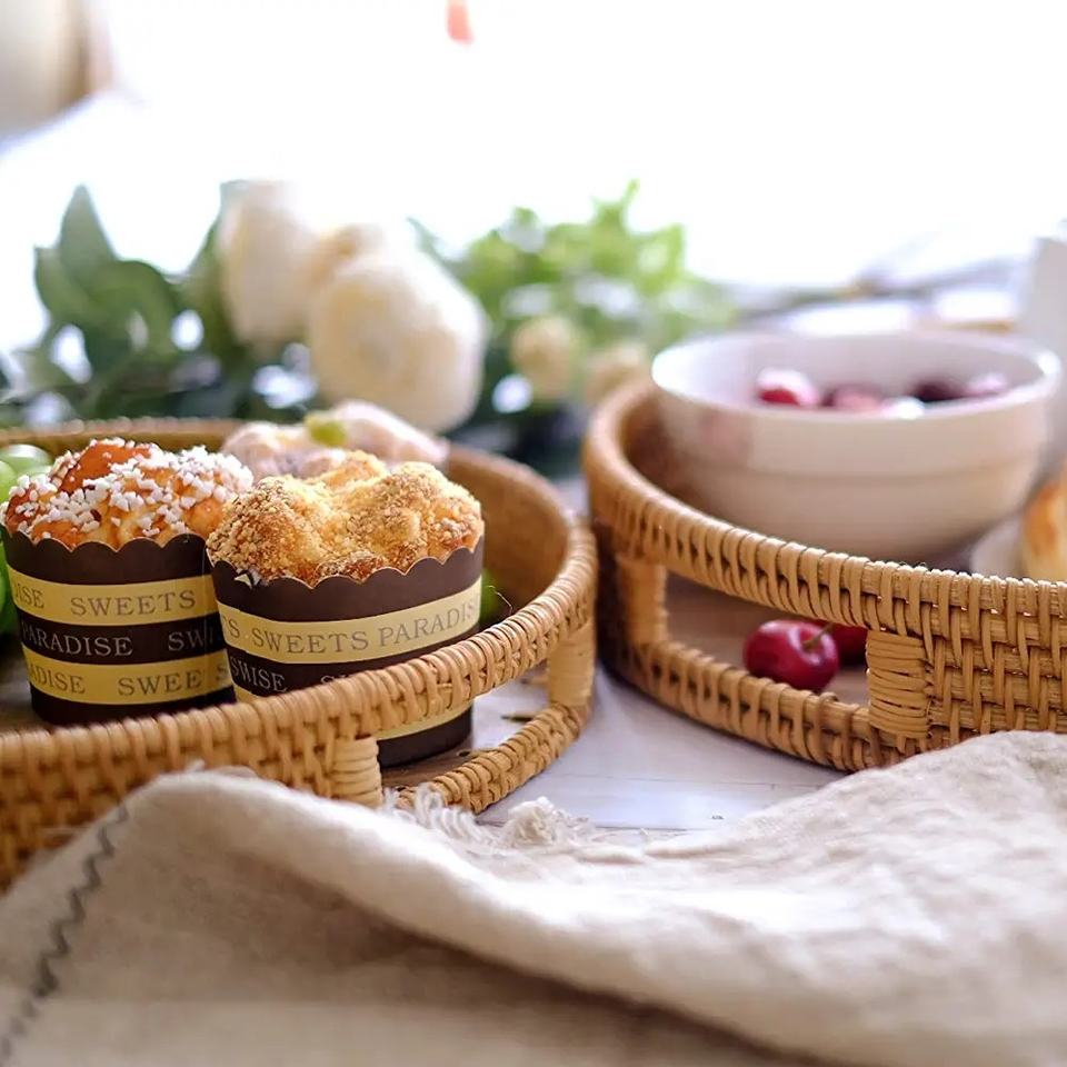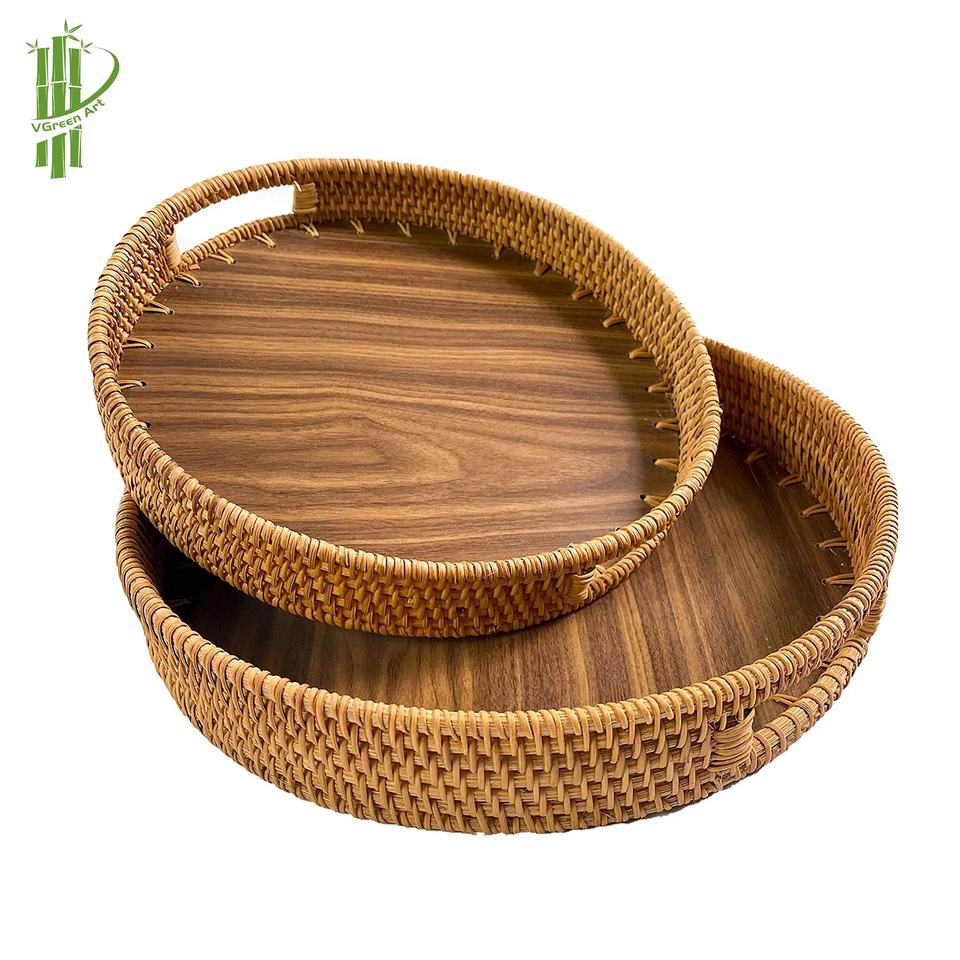 Bandeja de madera de ratán ecológica de gran venta para uso doméstico, cocina, restaurante y hotel