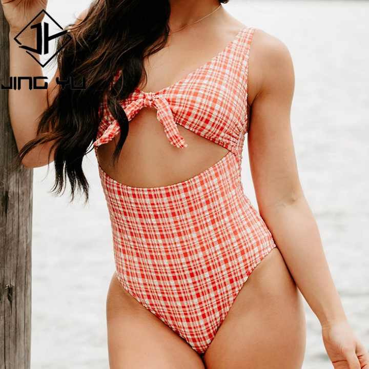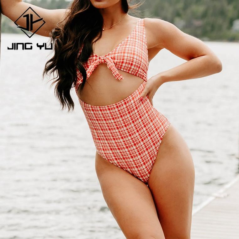 Traje de Baño de Tela Ecológica de Venta Caliente, Traje de Baño de Moda con Nudos y Aberturas, Traje de Baño de Nailon para Mujer, Traje de Baño de Una Pieza para la Playa