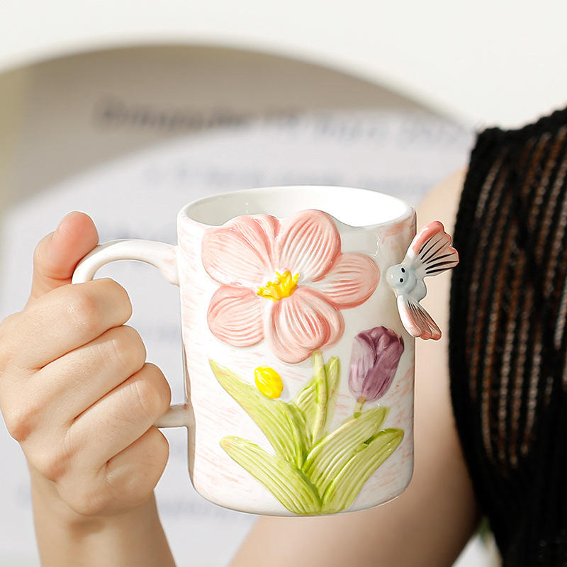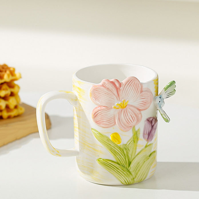 Hot Selling Embossed Flower and Butterfly Ceramic Mug