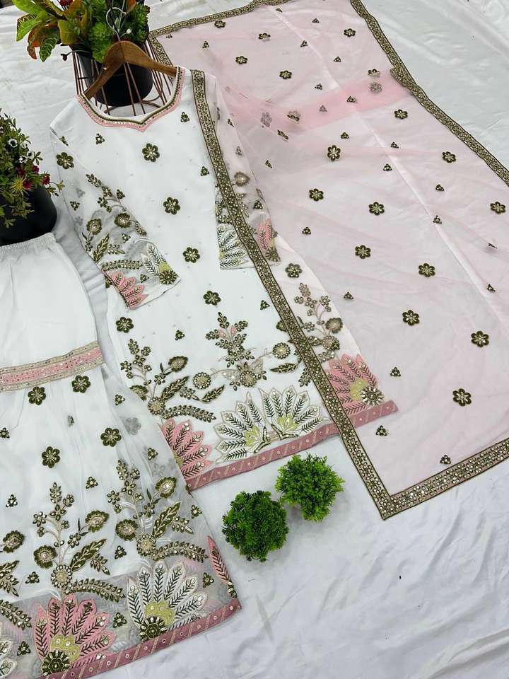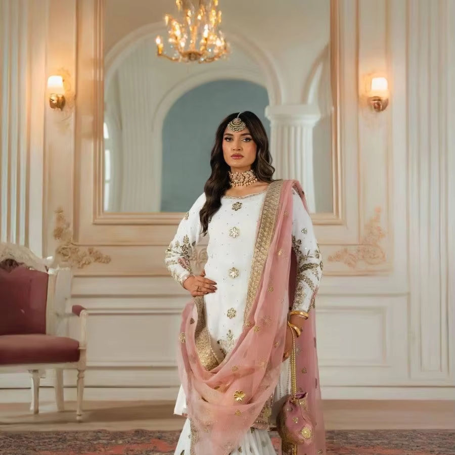 Nombre del producto:Faux Georgette secuencia bordado superior Sharara con Dupatta